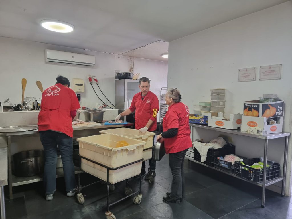 המתנדבים שלנו עובדים במרץ במטבח כדי להעניק מכל הלב לסועדים שלנו אוכל טעים ומזין.